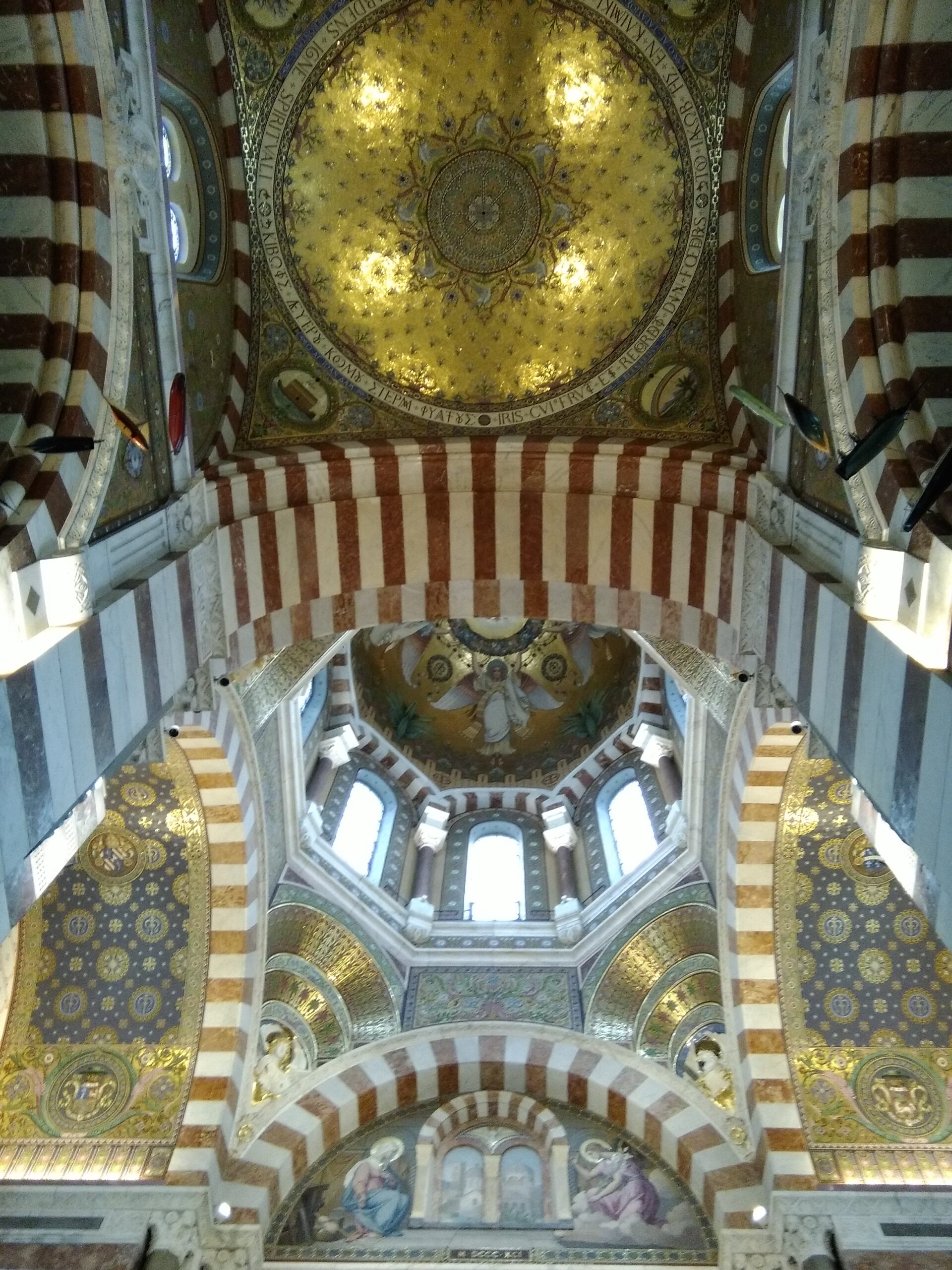 Obvykle při návštěvách kostelů cítím spíš stísněnost. Všechna ta zašlá krása z mramoru na mě působí pochmurným dojmem. Vznáší se v nich prach a popel staletí. V téhle bazilice jsem ale vnímala veselou, skoro až hrabou atmosféru. Výzdoba byla pestrobarevná a hřejivá. Od stropu visely malé modely lodí. Mohla jsem se tu nadechnout s lehkostí. Na chvíli jsem pocítila opravdový klid a mír v duši. A když jsem vyšla ven, vzala mi dech vyhlídka na Marseille. Město, které se táhne až k obzoru. A na moře a Frioulské ostrovy, rozsypané po hladině.