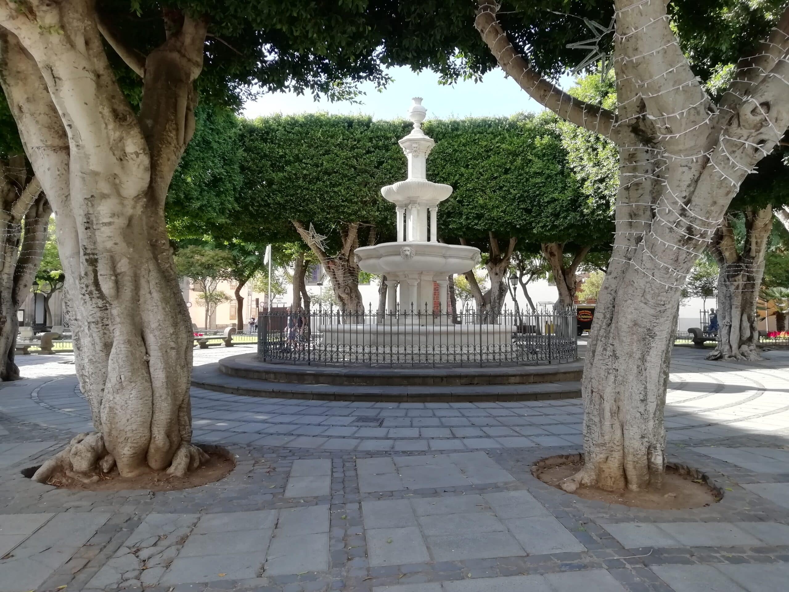 Odtud jsem chtěla jít do muzea archeologie, které otevřené být mělo, ale nakonec jsem si na to musela zase zapnout navigaci v Google Maps. Muzeum archeologie, které bylo hezké, ale celé ve španělštině. Byla jsem tam asi půl hodiny, pak jsem vyšla ven a hned o pár domů dál bylo otevřené patio a v něm stál muž, tak jsem se ho rozhodla zeptat, jestli je to “public” a on řekl, že patio ano. Nevím, co to je, ale je to otevřené, na rozdíl od zbytku La Laguny, tak tam vlezu, ne? Tak jsem šla dovnitř, byla tam kašna a po obvodu květinových záhonů rozmístěné kovové sochy, většinou s náboženskou tematikou.